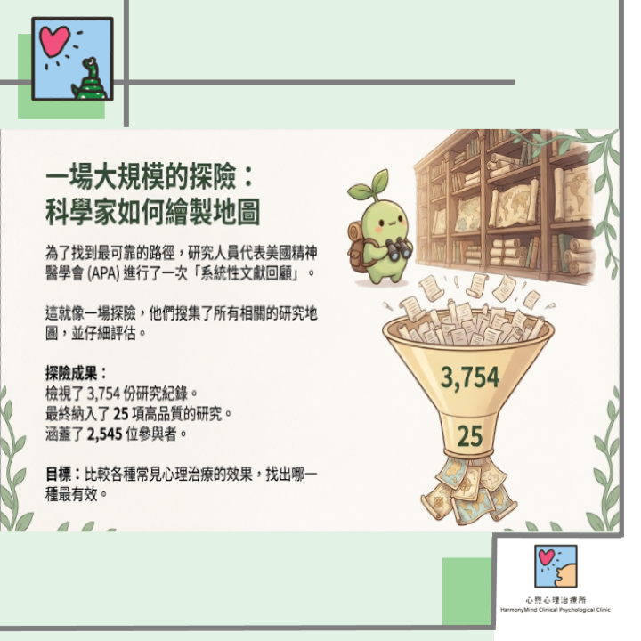 對此,研究的核心結論非常明確:目前沒有強而有力的證據顯示,有任何一種心理治療方法,絕對優於其他方法。