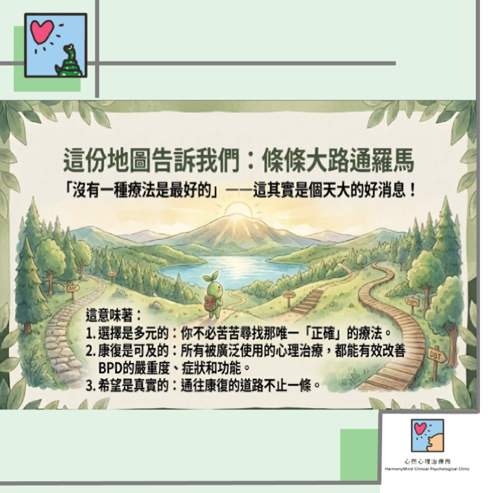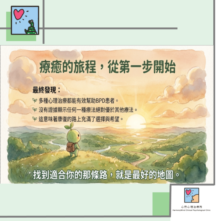 結語 這趟偵探之旅最終發現,在治療邊緣型人格障礙的道路上,或許沒有唯一的「冠軍療法」,但我們卻發現了更珍貴的東西——希望是存在的,而且多條道路都能通往康復。這項研究成果是對所有正在努力的人們最有力的肯定。如果你或你身邊的人正為此所苦,請記得,勇敢地踏出尋求幫助的第一步,本身就是最關鍵、也最有效的一步。