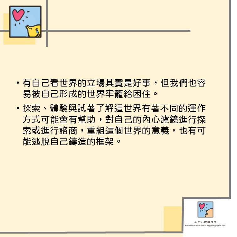 有自己看世界的立場其實是好事,但我們也容易被自己形成的世界牢籠給困住。