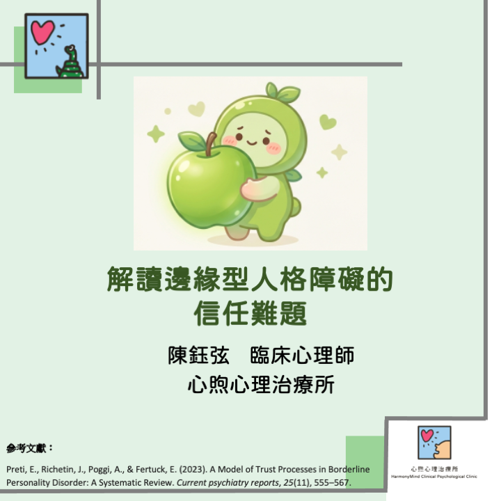 更多延伸閱讀請點擊 邊緣人格不再邊緣 ,讓心理師持續透過文字陪伴您成長