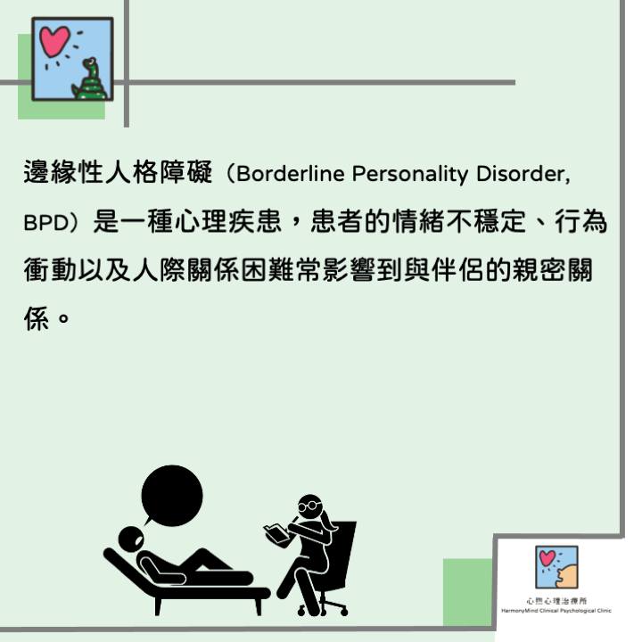 邊緣性人格障礙(Borderline Personality Disorder, BPD)是一種心理疾患,患者的情緒不穩定、行為衝動以及人際關係困難常影響到與伴侶的親密關係。對於有伴侶的BPD患者來說,穩定持久的關係往往充滿挑戰,容易出現情感波動、衝突和誤解。然而,透過理解和支持,有機會改善雙方的互動並建立更健康的關係。