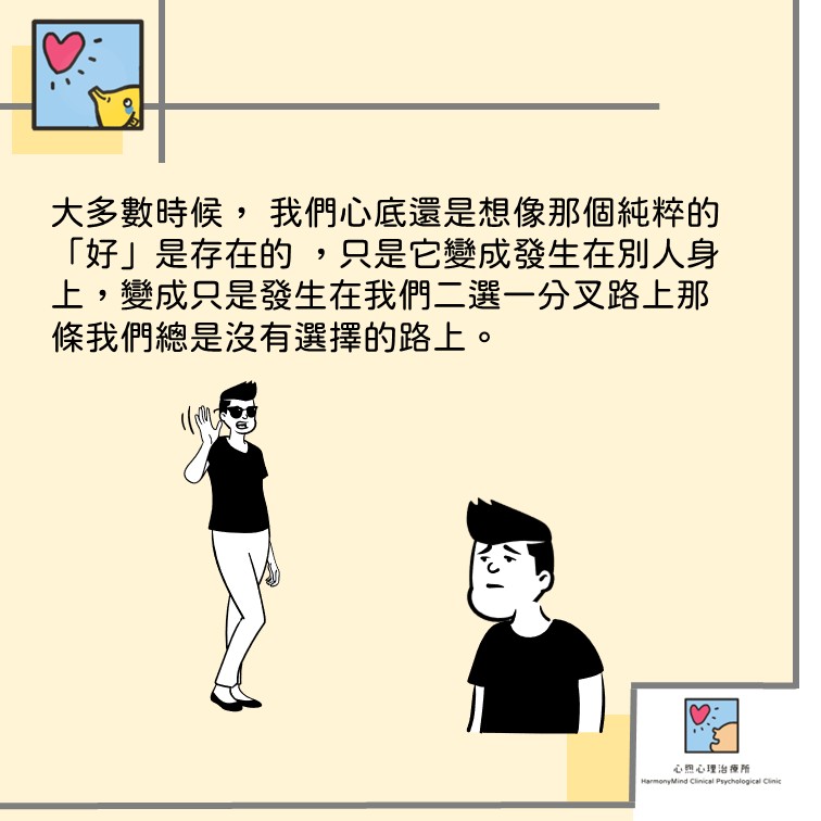 大多數時候, #我們心底還是想像那個純粹的「#好」#是存在的 ,只是變成發生在別人身上,只是發生在我們沒有選擇的二選一分叉路上。於是我們怨嘆自己的不好,然後忌妒羨慕。我們看著別人限時動態的笑臉,覺得那可能就是我們要追求的快樂,聽著別人分享的成就,覺得別人運氣怎麼那麼好,閱讀著別人訴說的故事,想像著如果是自己,一定也能從中得到心靈的啟發吧。